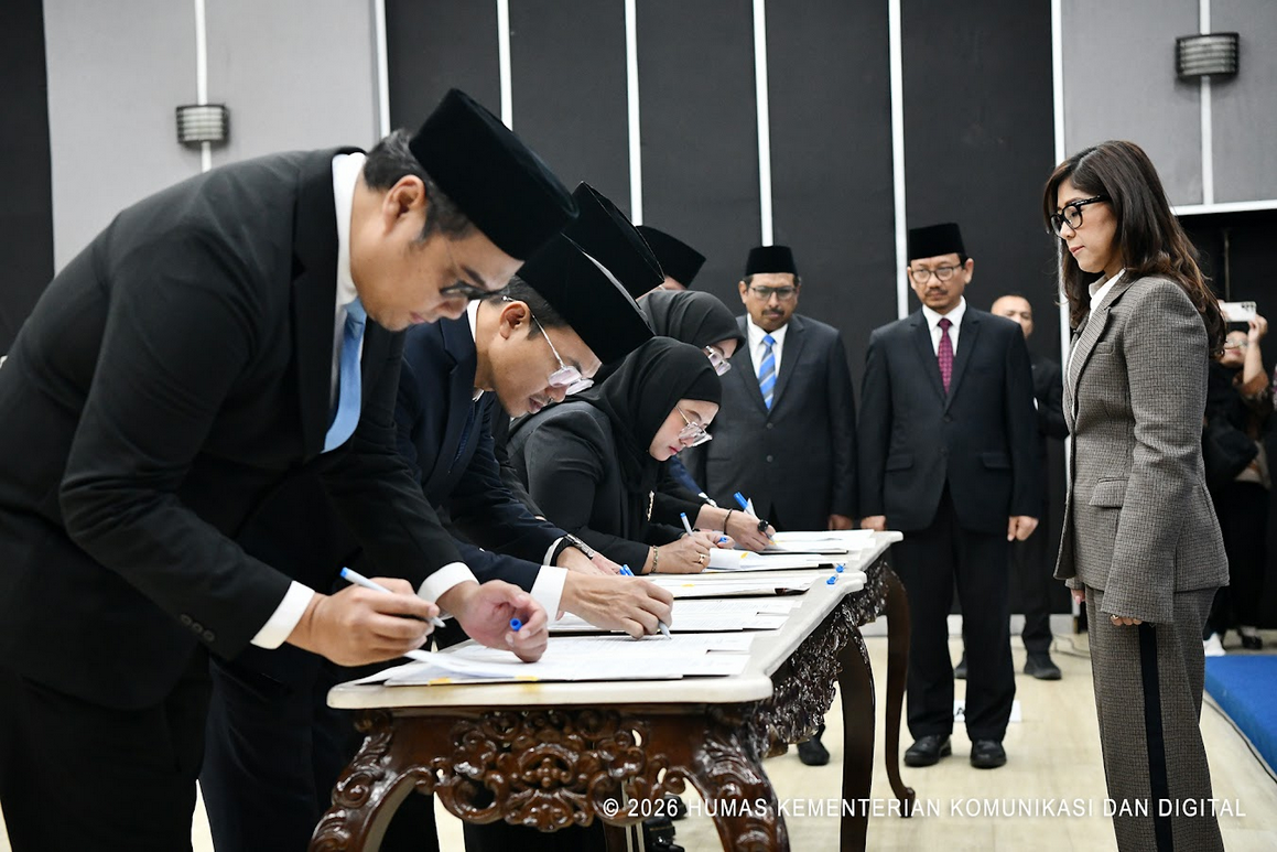 Pejabat yang dilantik antara lain Sonny Hendra Sudaryana sebagai Direktur Pengembangan Ekosistem Digital, Farida Dewi Maharani sebagai Direktur Ekosistem Media, Nunik Purwanti sebagai Direktur Komunikasi Publik, Muhammad Zamzani B Tjenreng sebagai Sekretaris Komisi Informasi Pusat, Indra Maulana sebagai Direktur Pengendalian Infrastruktur Digital, serta Ervan Fathurokhman Adiwijaya sebagai Sekretaris Direktorat Jenderal Infrastruktur Digital.