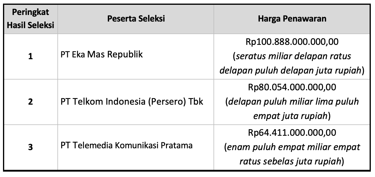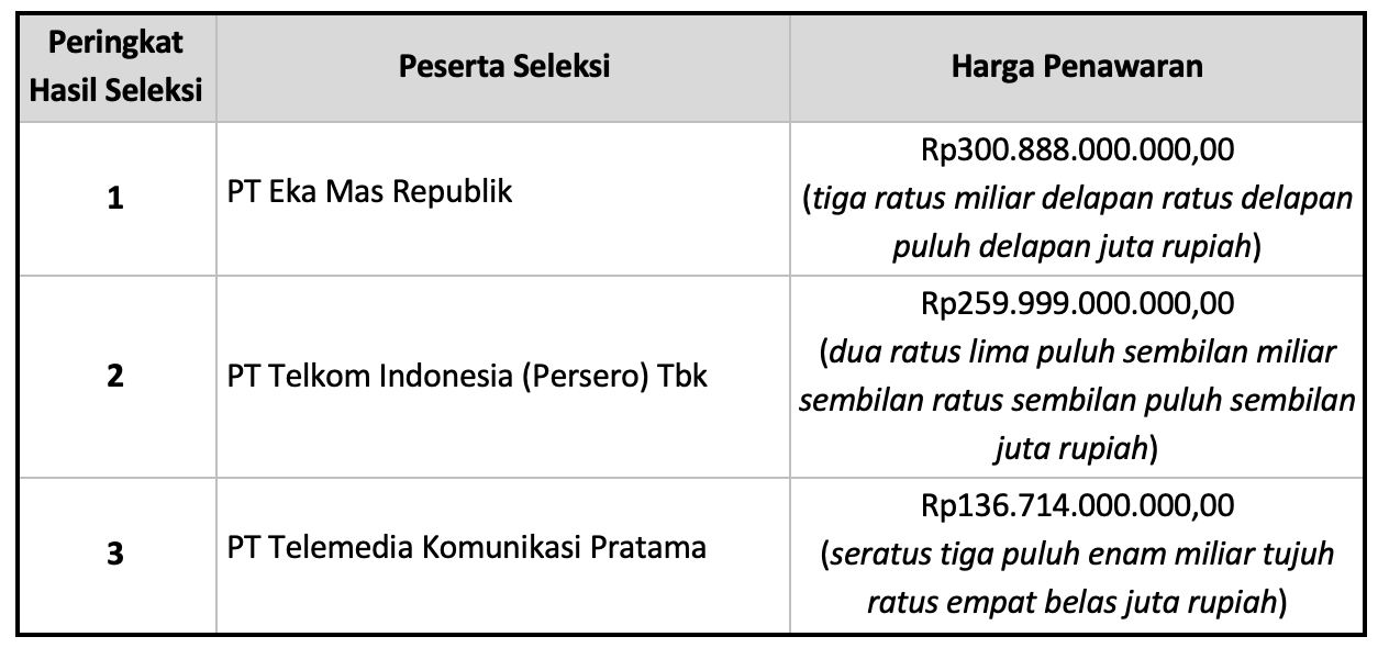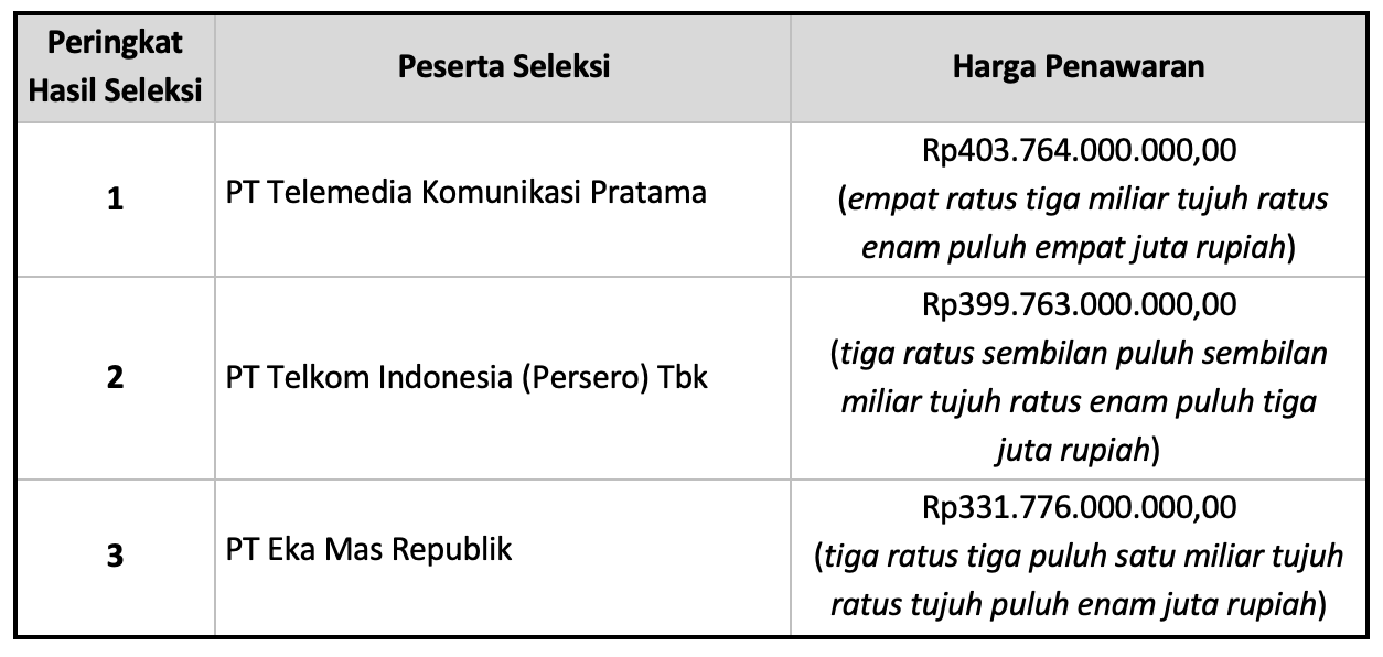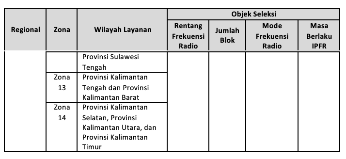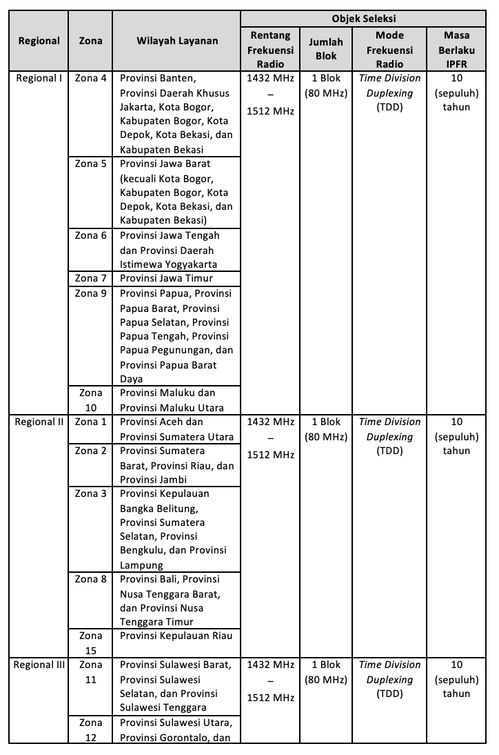 3. Sesuai ketentuan dalam Dokumen Seleksi, Objek Seleksi Pengguna Pita Frekuensi Radio 1,4 GHz untuk Layanan Akses Nirkabel Pitalebar (Broadband Wireless Access) Tahun 2025 sebagai berikut: