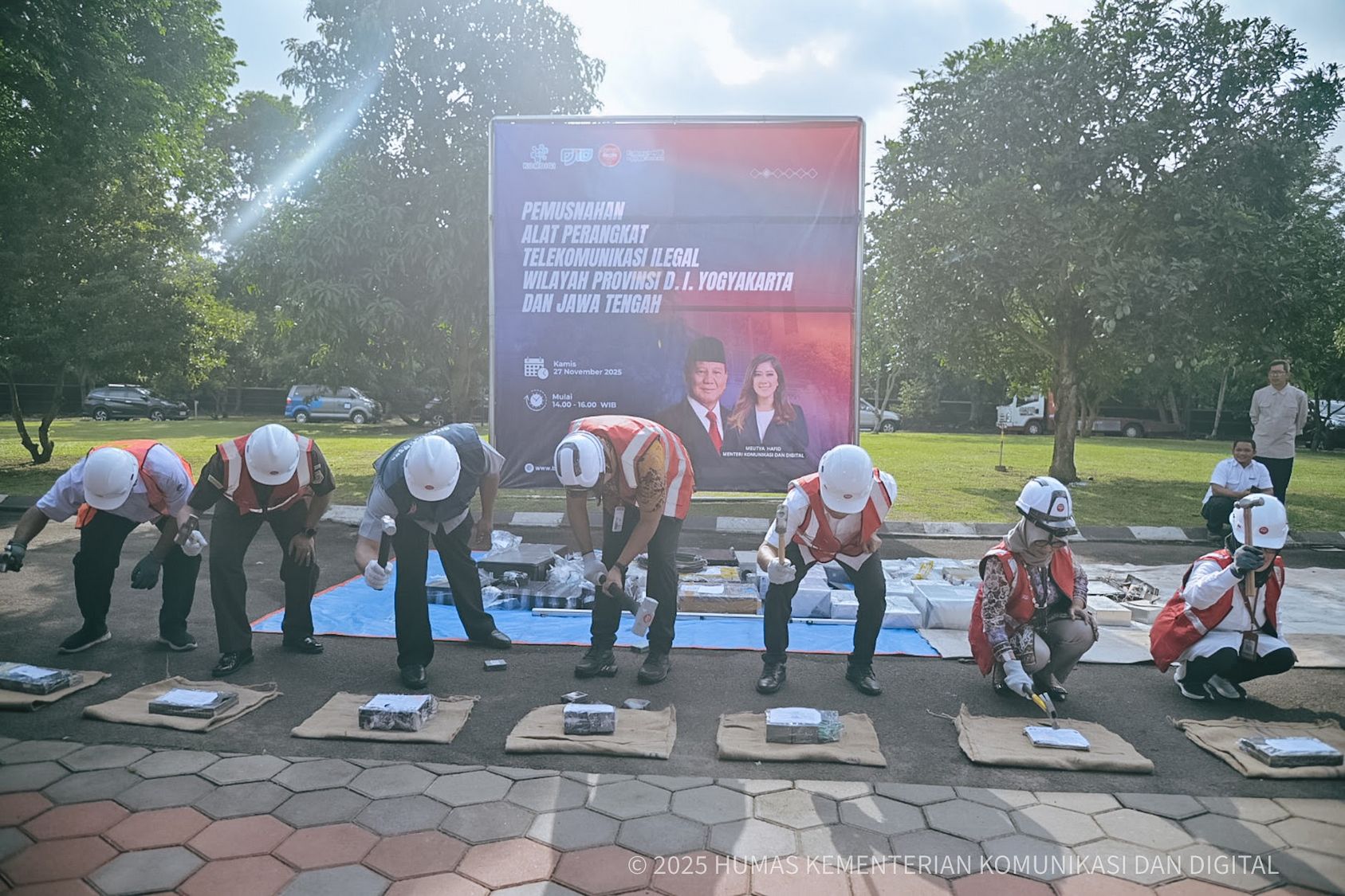 Dalam kegiatan pemusnahan tersebut, Kemkomdigi berhasil menyita 75 perangkat komunikasi ilegal, mulai dari pemancar rakitan, repeater GSM, hingga perangkat radio siaran tanpa izin milik perorangan, perusahaan dan instansi di wilayah Yogyakarta dan Jawa Tengah.